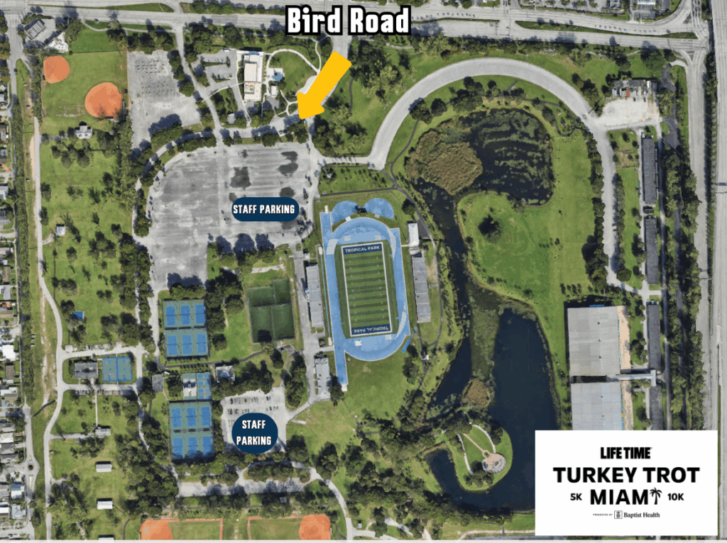 | 5:00 a.m. | Race-day registration and packet pickup opens | Registration tent at Tropical Park |